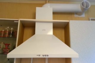 Прежде чем спрятать вытяжные трубы на кухне, следует ознакомиться с существующими видами встраиваемых вытяжек. Классическая модель просто встраивается над плиткой и имеет фиксированный размер, телескопическая может раздвигаться подобно антенне, увеличивая свою исходную длину. В современных условиях наиболее востребованы классические вытяжки, монтируемые прямо в навесном шкафу. В этом варианте важно предусмотреть такую маскировочную конструкцию, чтобы она не препятствовал свободному оттоку воздуха и хорошо вписывалась в интерьеры кухонного пространства.