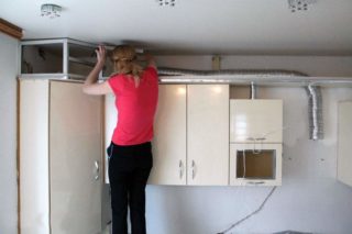 При монтаже проходных вытяжных систем на кухне используются различные варианты маскировки воздуховодов вентиляции. Их отличие проявляется в подходящей для каждого конкретного случая конструкции и в выбранных для этих целей материалах. При подготовке к работам также обращается внимание на размеры маскирующего короба для вытяжки на кухне. Важно заранее разобраться с существующими способами скрытия воздуховодов с учетом того, что по технологии встраивания в навесной шкаф вытяжки делятся на классические и телескопические модели. В зависимости от этого выбирается вентиляционный короб на кухне.