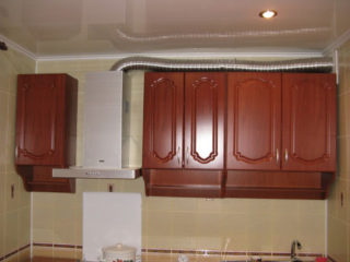 Для восстановления воздуховода на кухне с последующей маскировкой оптимально подходят плиты на основе гипса или пенные блоки.