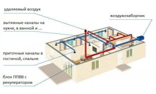 - Используют стандартную схему: приток воздуха в жилые комнаты, переток в служебные и вывод на улицу.